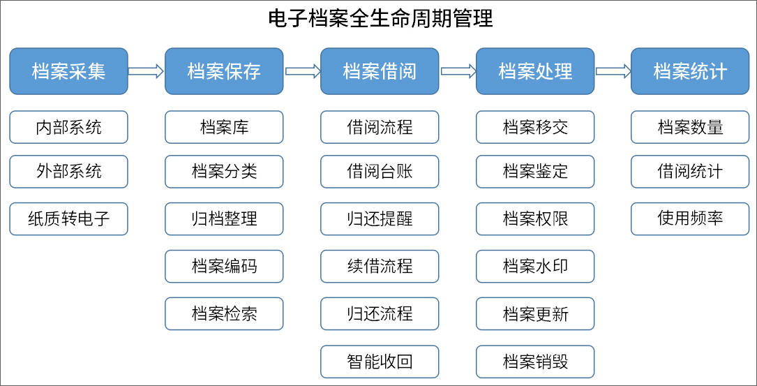 随着各行各业办公自动化系统的广泛应用,日常办公、业务中组织产生了大量的电子文件,这些电子文件归档形成的电子档案都需要进行管理和长期保存、利用。近年来国家高度重视电子文件归档和电子档案管理工作,已出台若干规章制度和规范性文件。OA以电子档案的真实性、完整性和可用性为原则,以OA系统为基础,以电子化流程为脉络,同时与其他专业档案管理系统集成,为组织提供一套规范储存、高效查阅的“数字档案馆”。